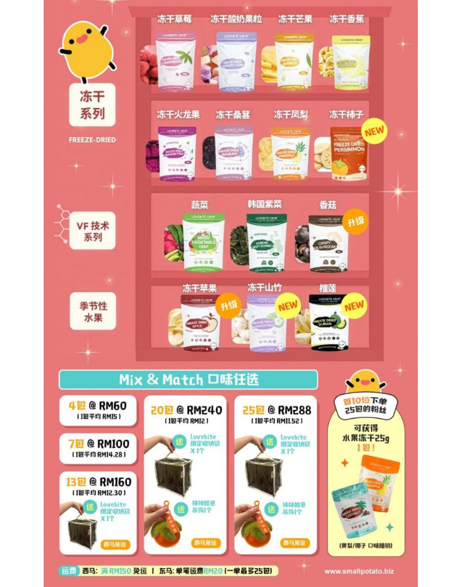 LoveBite Crisp零食采用冻干科技,