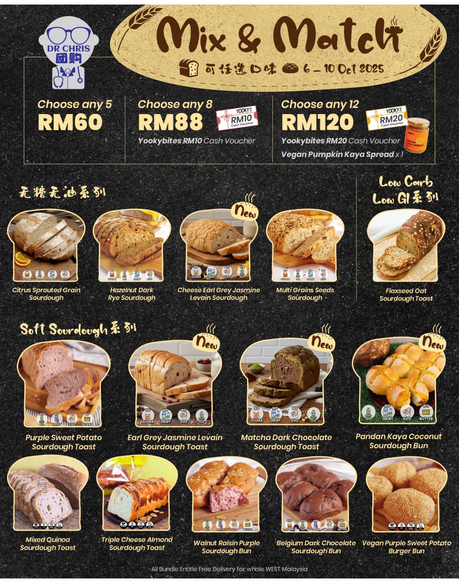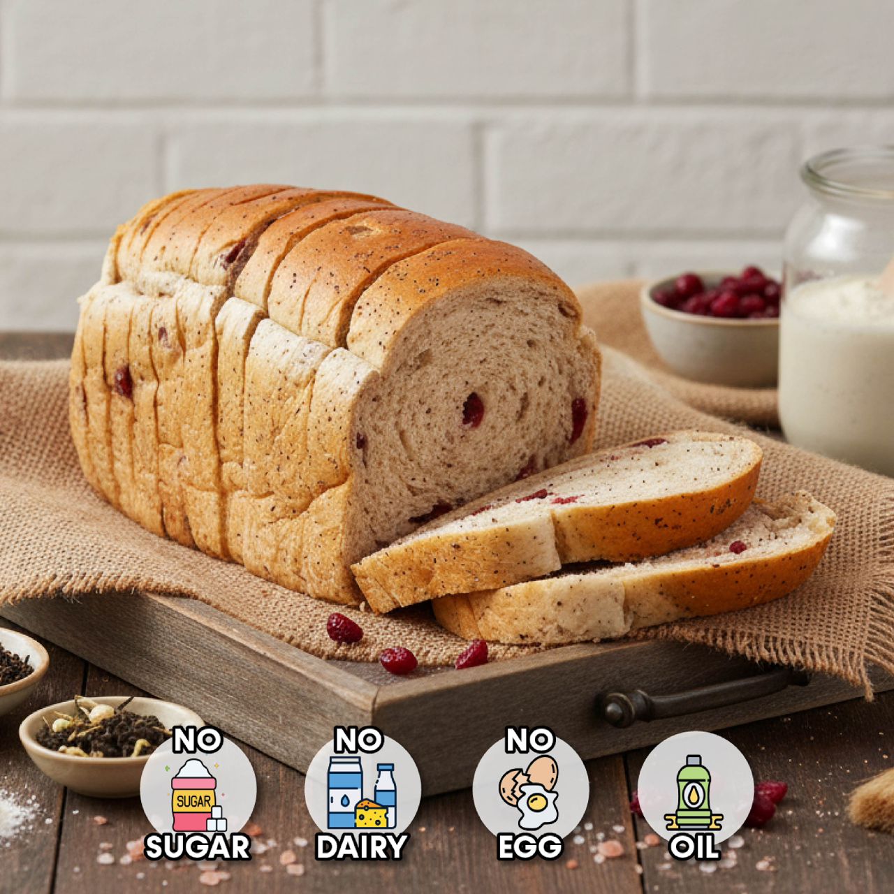 Unbleached Flour, Purple Sweet Potato, Organic Unrefined Brown Sugar, Sunflower Oil, Raisin, Almond, Walnut, Rye& Wheat Sourdough, Fermented Wheat, Himalayan Salt
